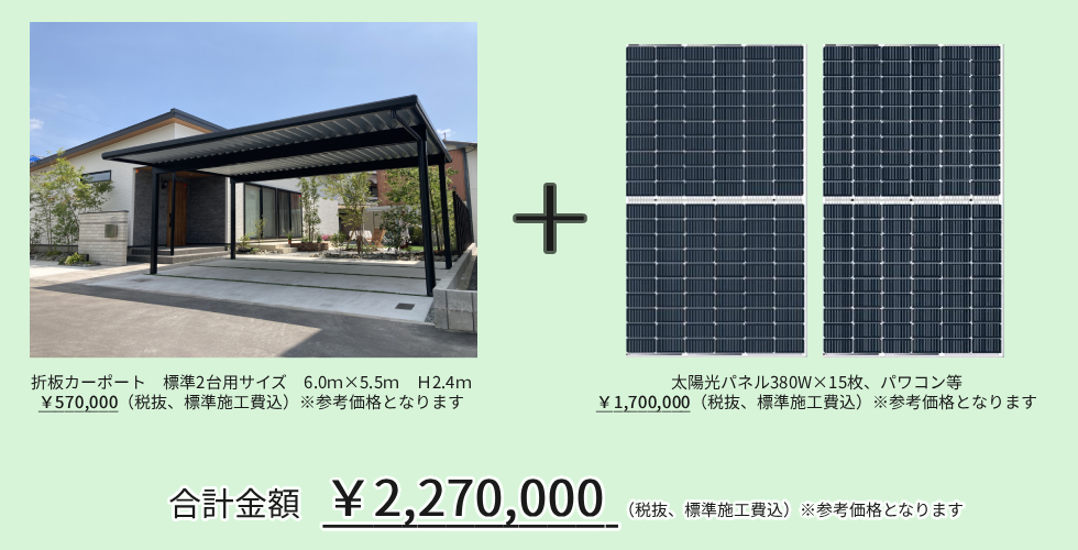 折板カーポート年間販売台数128台(2020年度)のガーデン光房の実績と、メガソーラー事業をおこなっているサンホームの協同ではじめて実現する、価格と品質です。