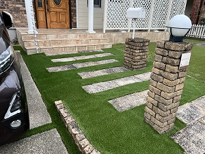 人工芝と石貼りが広がるお庭に 宮崎市 S様邸