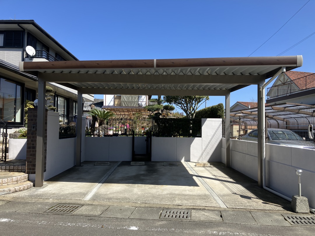 自然な質感が魅力の木調軒天カーポート~宮崎市N様邸~