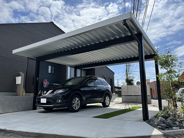 スタイリッシュなカーポートで魅せる新築外構