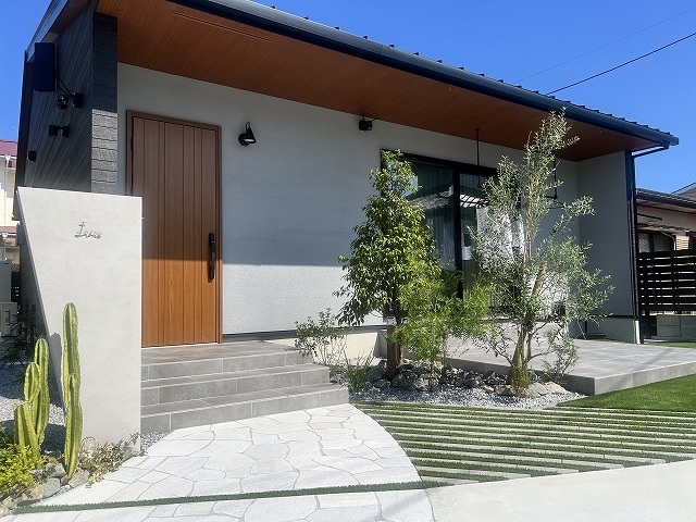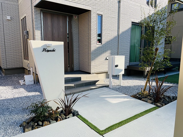 スタイリッシュでモダンな建物に合わせたナチュラルシンプルモダン外構~都城市U様邸~