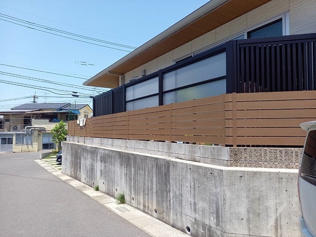 木目調アルミ板塀フェンスの目隠し 新富町 I様邸