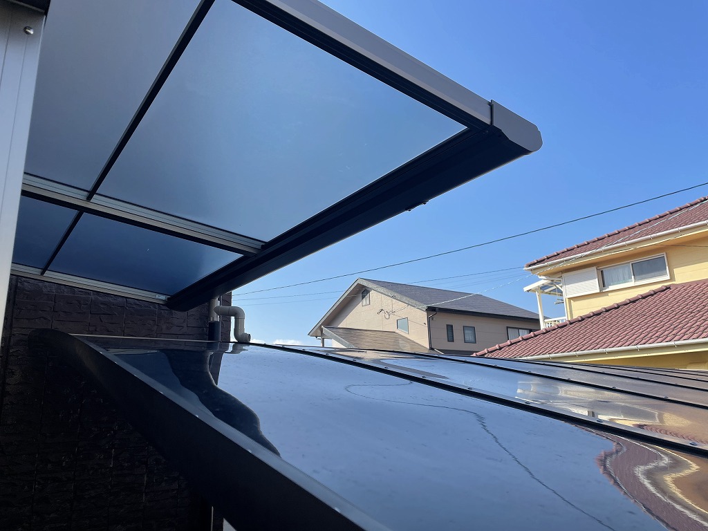 カーポート後ろにも屋根テラスを取り付けて自転車を停めても濡れないようになりました!