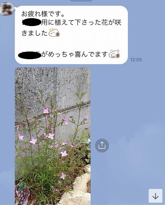以前に娘さんがピンクがお好きと聞いていたので植えたボロニアが綺麗に花を咲かせてくれて娘さんがとても喜んでくれたようです!