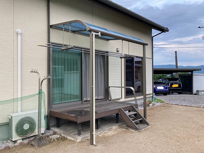 雨や視線をカット!サイクルポートとテラス屋根工事 霧島市N様邸