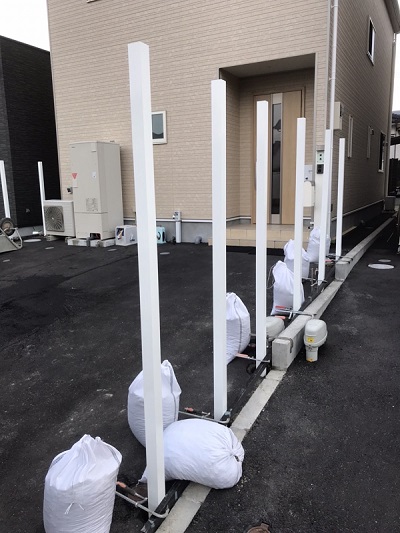 駐車スペースの両サイドに目隠しフェンスを設置していきます!