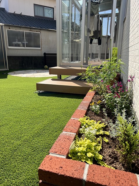 花壇のある家族みんなで楽しく過ごせるお庭にしたいとのご相談でした!