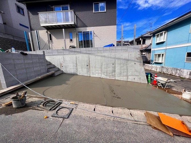 ご相談があった時がまだ建築計画中の時でしたので外構の駐車スペースも一緒に考えていただきハウスメーカーさんで擁壁工事をしていただきましたがこちらの位置等も外構を考慮して計画変更していただきました。