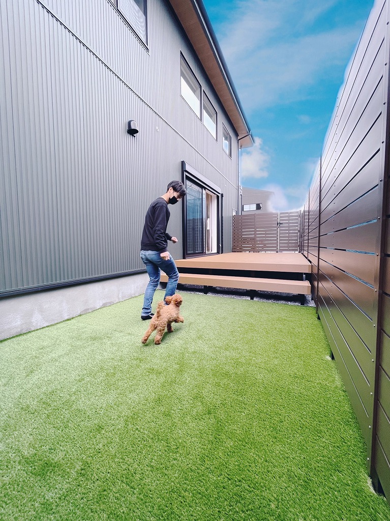 デッキと目隠しでリビングとのつながりを~ワンちゃんも大はしゃぎ~ 宮崎市K様邸
