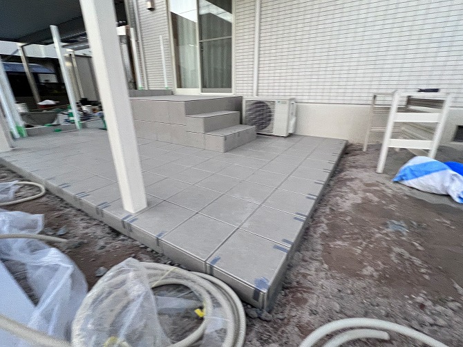 タイルテラスの上にはYKKのリレーリアを今回の住宅がスクエアな雰囲気でしたのでこちらの商品をセレクト