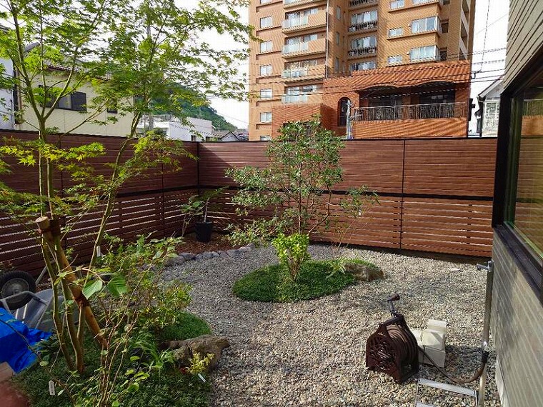 今回は造園屋さんの搬入の関係でフェンスを張らずに後から施工しています。
