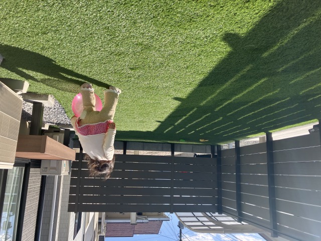 お庭は、施主様のご希望で全面に弊社オリジナルの人工芝を貼らせていただきました(^^)/