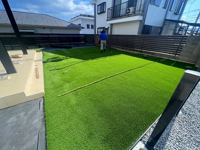 オリジナル人工芝「エバーグリーン」を施工中