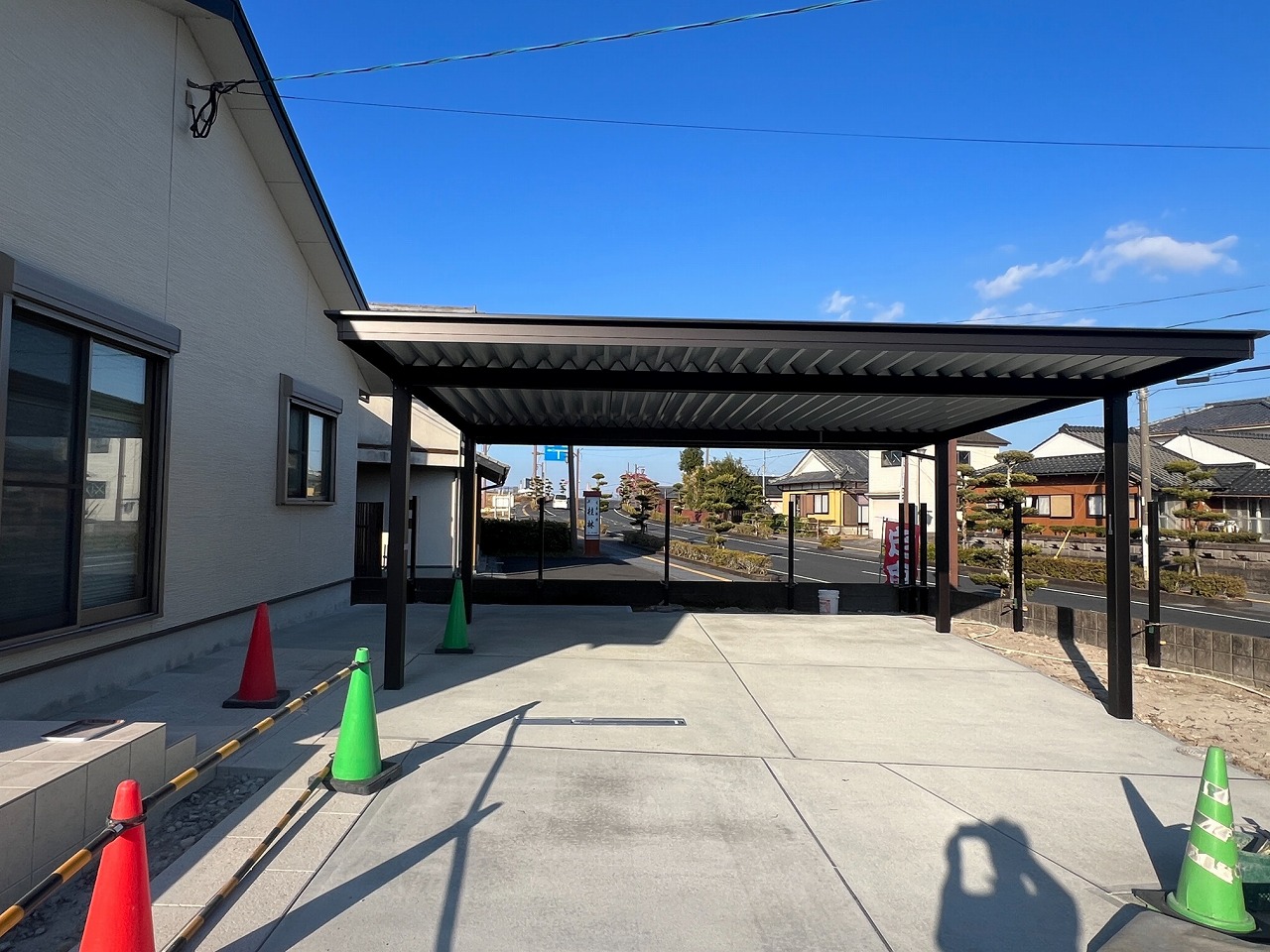 メインの駐車場には2台用折板カーポートの幅の広いタイプを