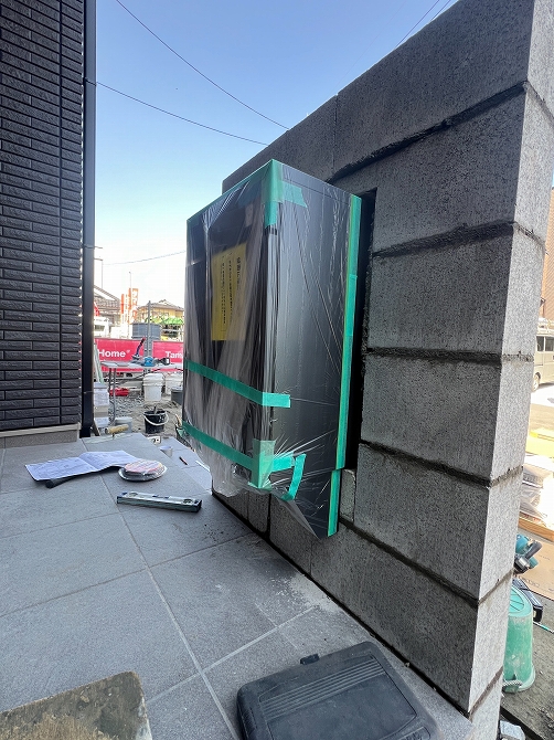 門柱は型枠ブロックを積み上げて