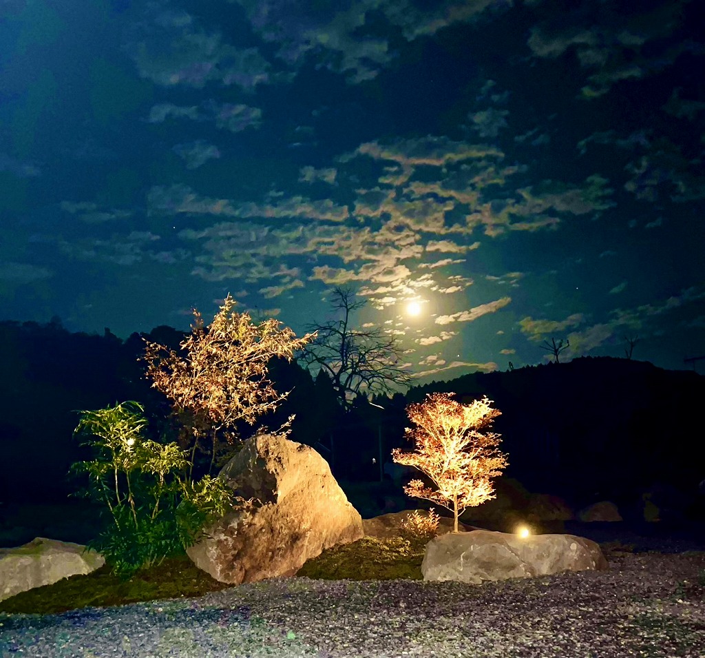 月の出ている夜に撮影されたそうで、ライトアップされたお庭もまた綺麗です!