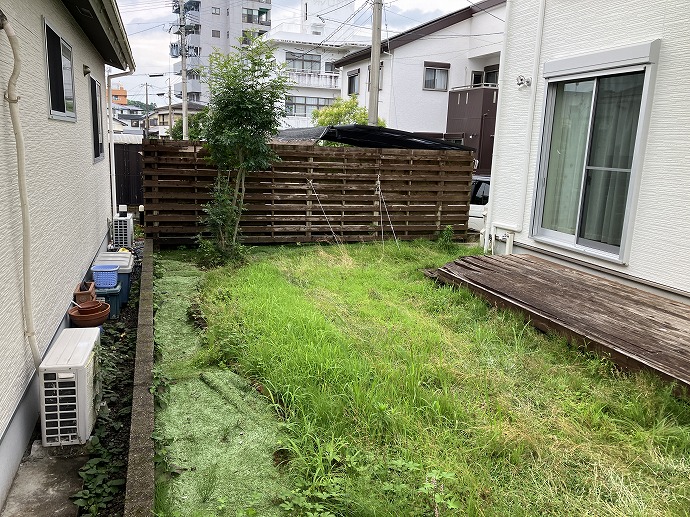今回のお客様は天然木のフェンス・デッキを作り変えたい、庭をキレイにしたいお気持ちでご相談に来られました。