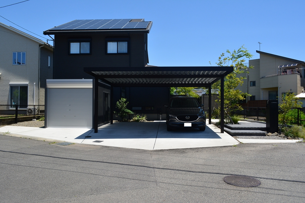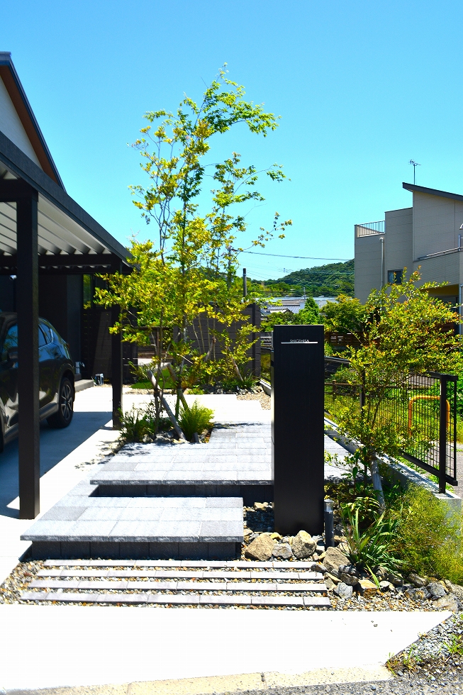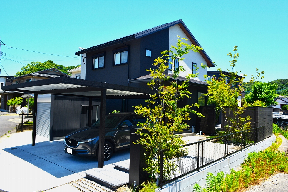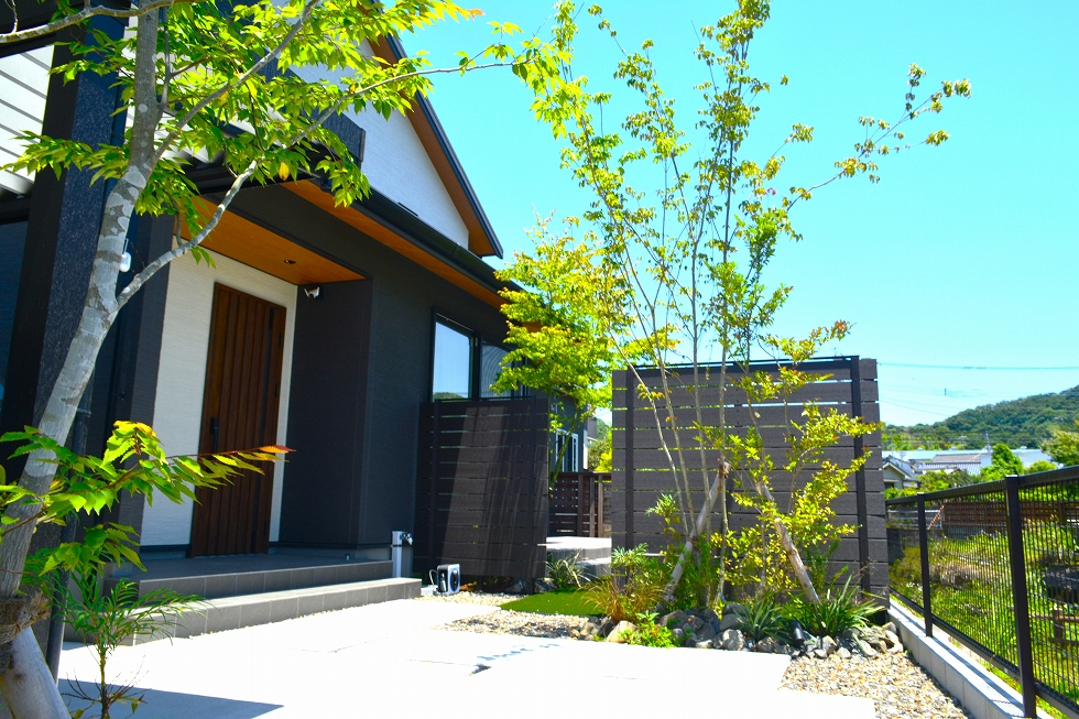 植栽に囲まれたモダンな住宅の外構工事 豊かな緑量編 鹿児島市S様邸