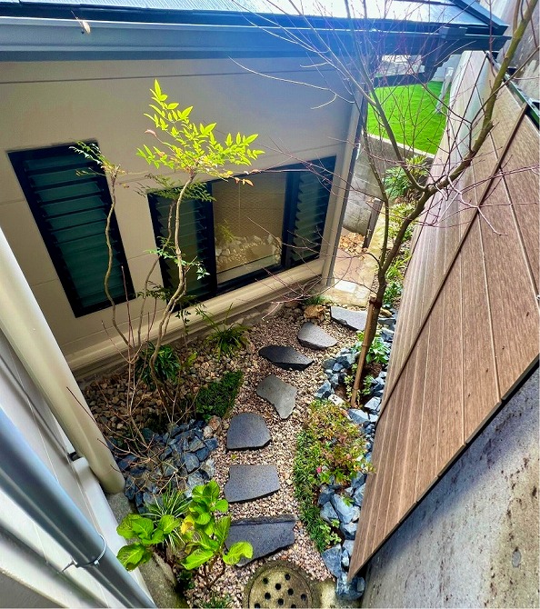 お風呂場からの眺めを素敵にしたい狭小スペースをおしゃれにリガーデンの緑が沢山バージョン 鹿児島市M様邸