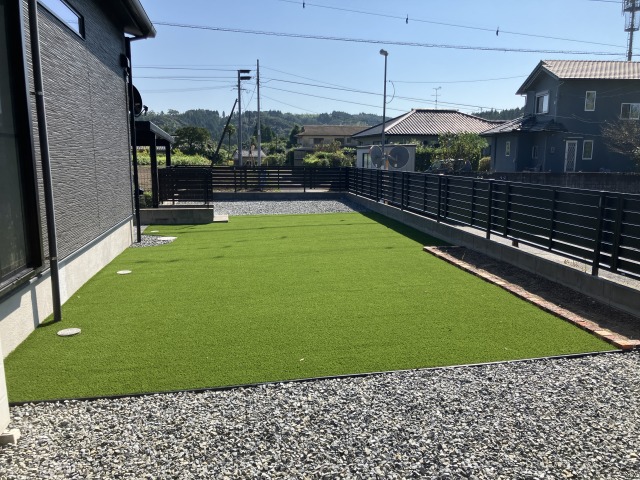お庭全体には人工芝を施工。