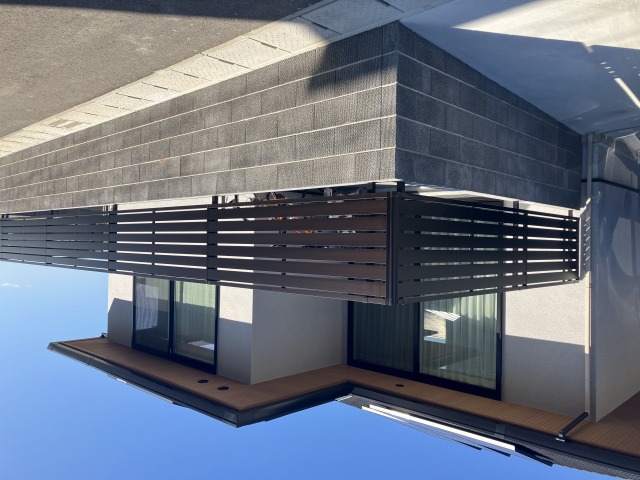 フェンスの色味は建物外観と統一し、程よく視線を遮りながら、圧迫感を抑えたデザインとなっています。