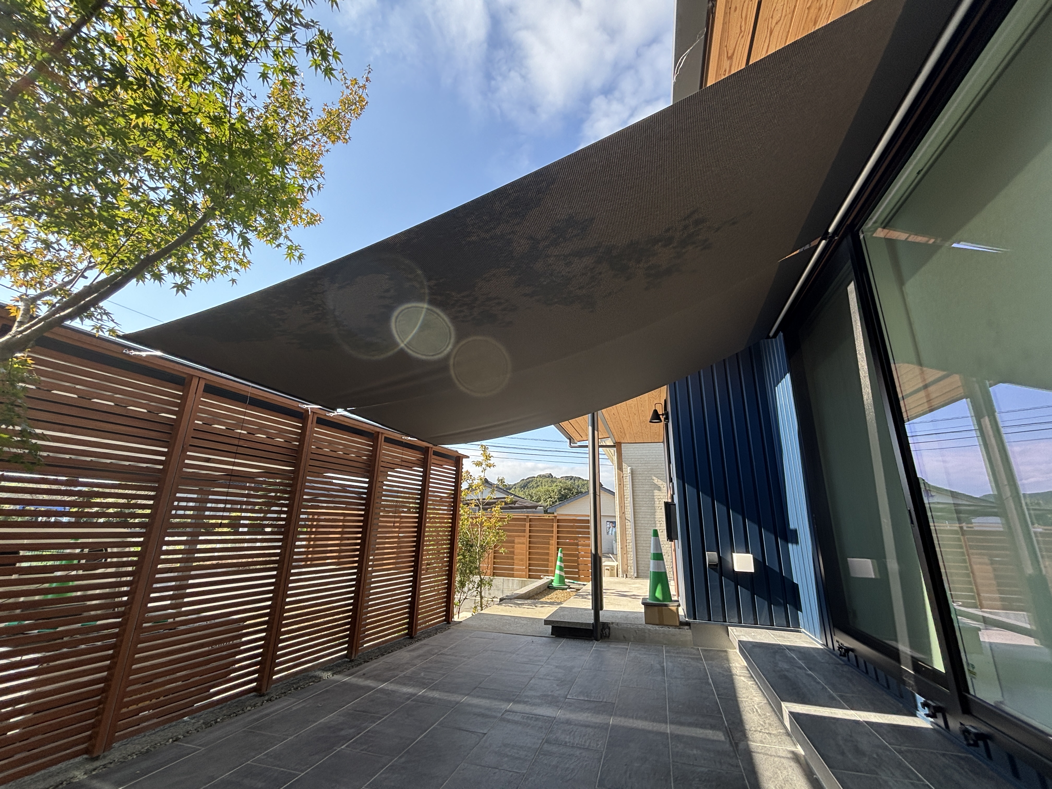 シェードを取り付けて夏の暑い日にはお庭でプールが楽しめます!