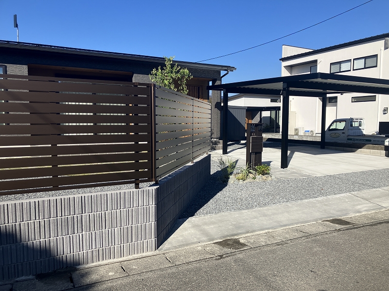 ダークトーンでまとめた機能的な新築外構 都城市K様