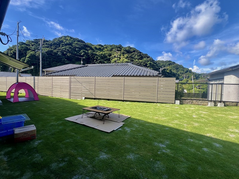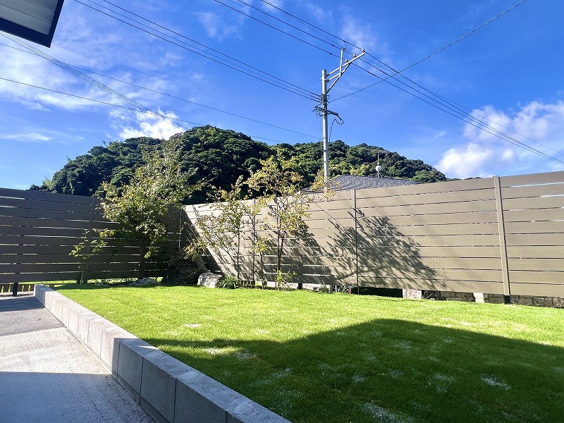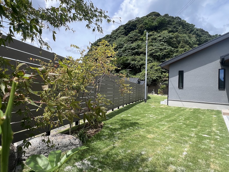 【2】お庭は芝生×フェンスの“緑とグレー”が映える空間に