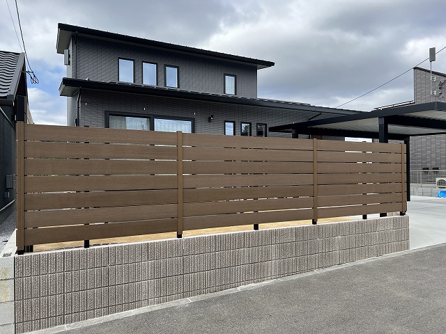 隣地側と道路側には樹脂製の目隠しフェンスを施工