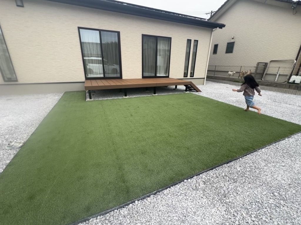 さらに、デッキ前には人工芝を施工しました。