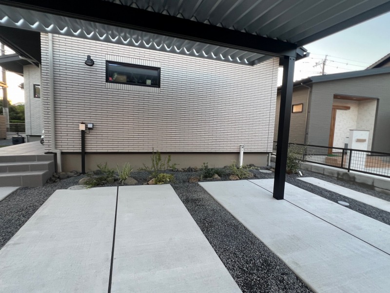 今回は、姶良市のT様邸のご紹介。シンプルな一条工務店さんの住宅に合わせてプラン・施工した外構工事のご紹介です。