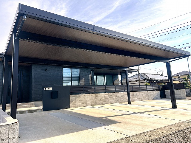 建物と一体感のある木目調軒天パネルのカーポート~新富町H様邸~