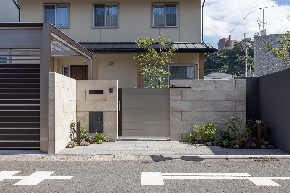 明るい色合いを使用した和モダンテイストなクローズ外構 鹿児島市S様邸