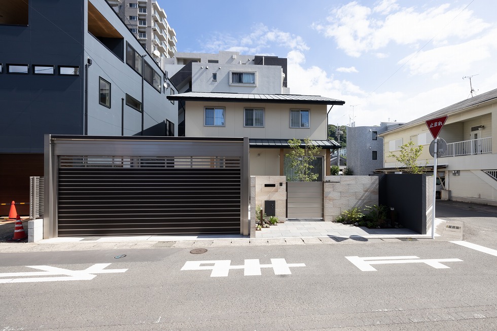 HOME» 施工事例集| 新築外構で悩んでいる »明るい色合いを使用した和モダンテイストなクローズ外構 鹿児島市S様邸