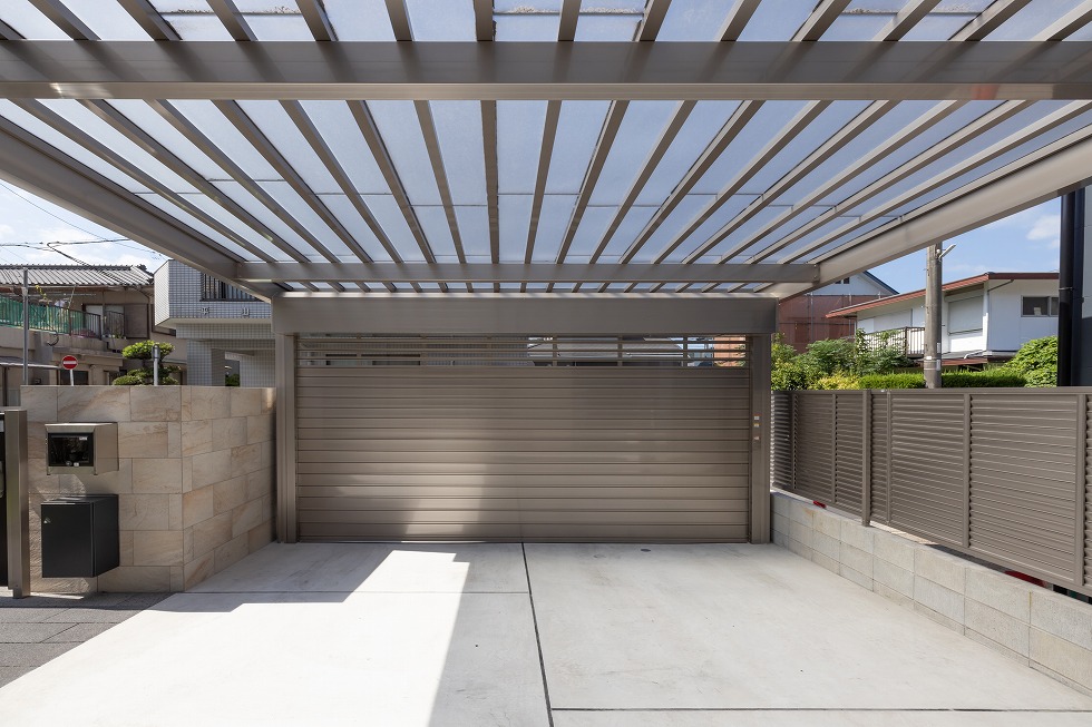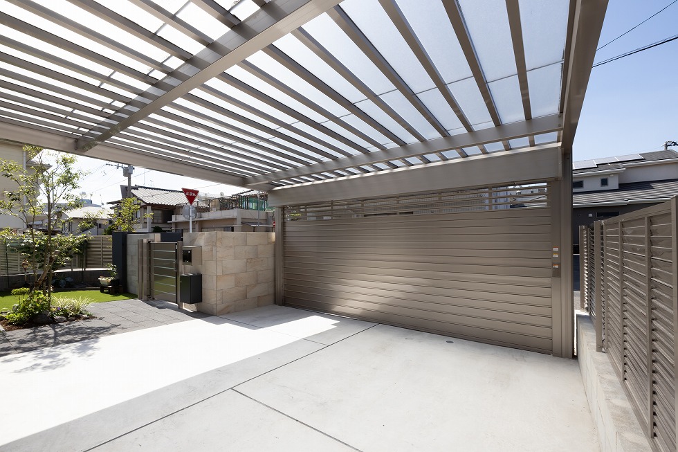 スタイリッシュなカーポートFⅡを使用したかっこいいファサードデザインの新築外構 鹿児島市K様邸 |