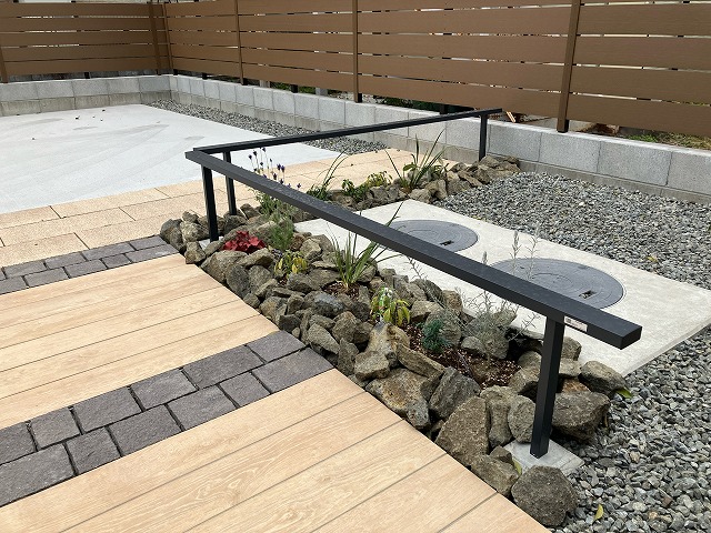 生活感を抑えつつ、管理もしやすい外構になっています。