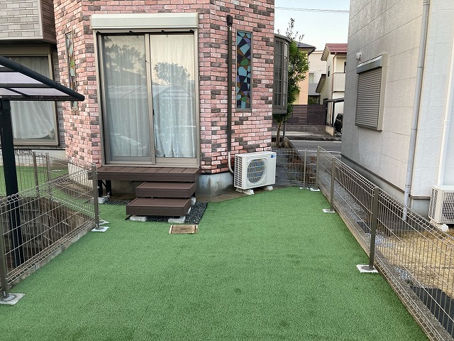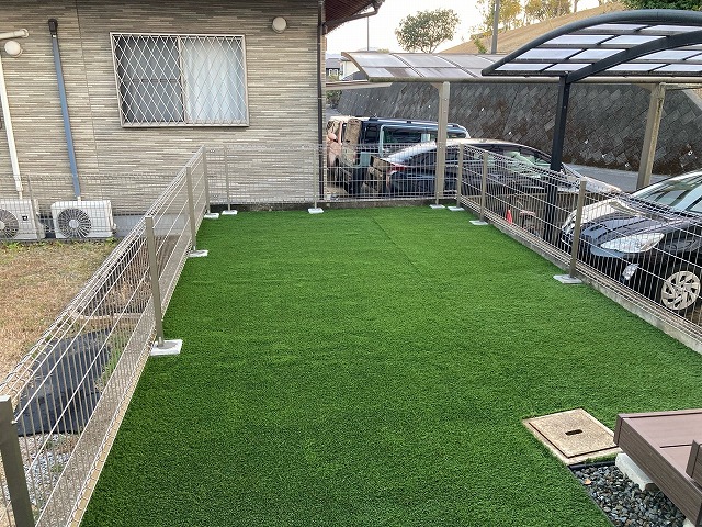 お庭全体がスッキリとし更にワンちゃんがお庭で思いっきり運動できる、散歩の時間を確保する事を考えずできない時はお庭で遊ばせることができる事でよりよく生活できるとお声を頂きました!
