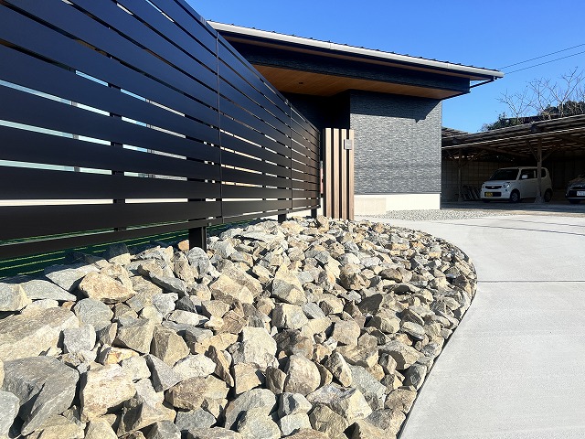 HOME» スタッフBlog »ロックガーデンの曲線アプローチ新築外構 ~新富町I様邸~