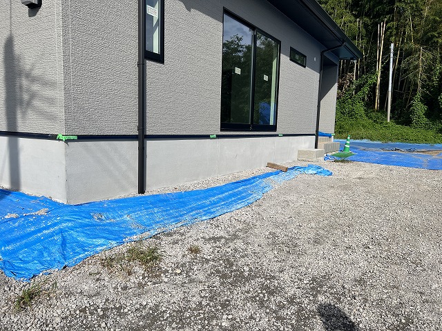 お車の通らない残りのスペースには耐久性の強い防草シートを施工し、雑草対策もばっちり行っております。