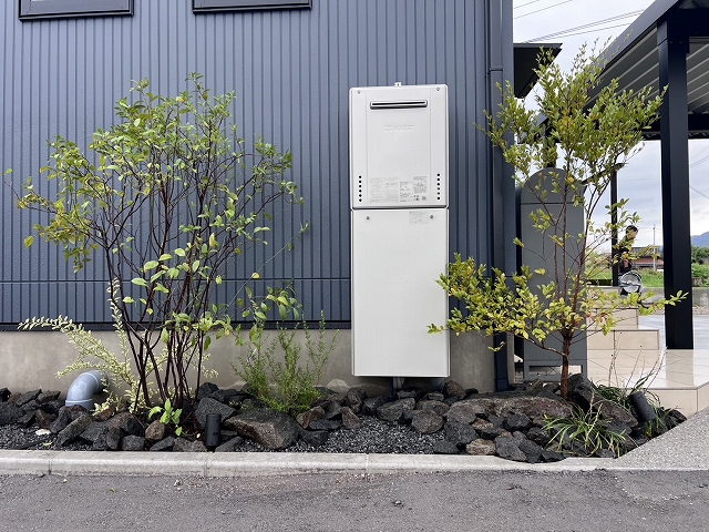 無機質になりすぎないよう、外構には