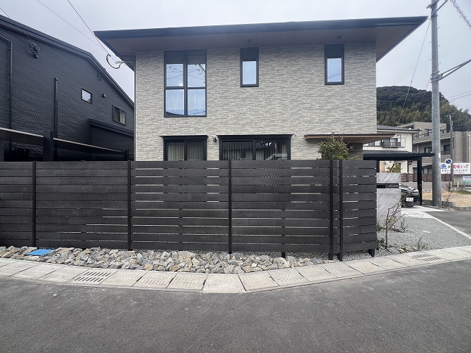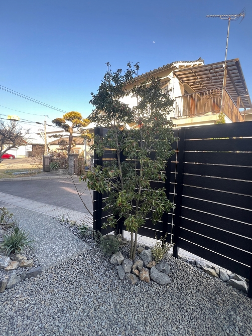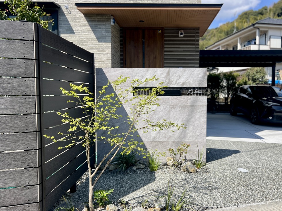 落ち着きと存在感を兼ね備えた外構に仕上がりました。