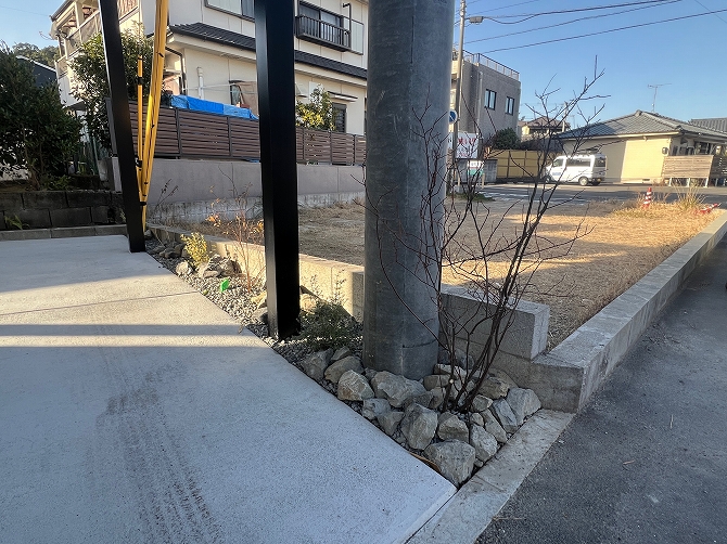 ✔ お庭には2期工事を見据えて位置に植栽を配置
