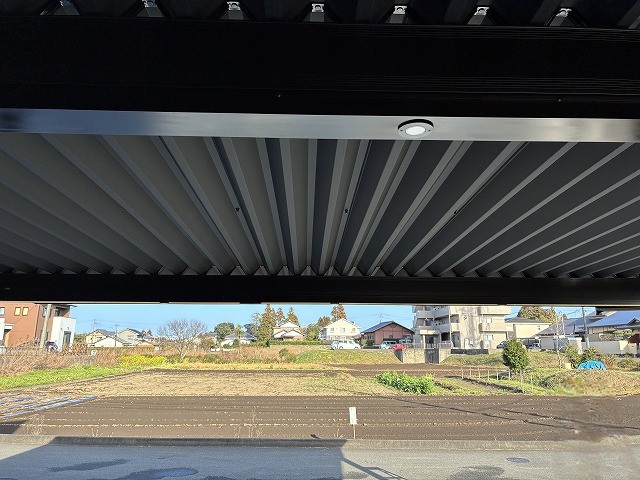 カーポートはおなじみの鉄板カーポートですが屋根材の鉄板・金具材まですべて黒になるオールブラック!YKKさんのジーポートProです!