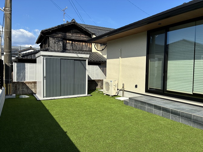 お庭部分には人工芝を施工しています。