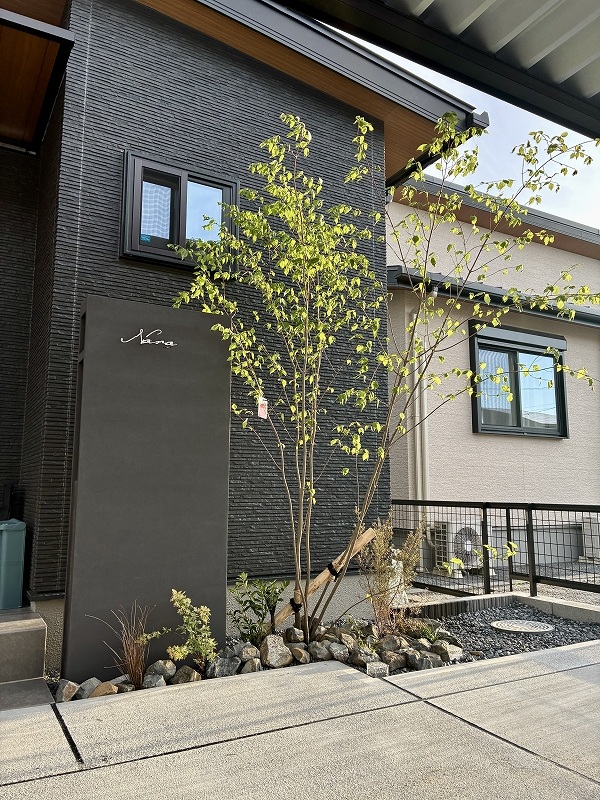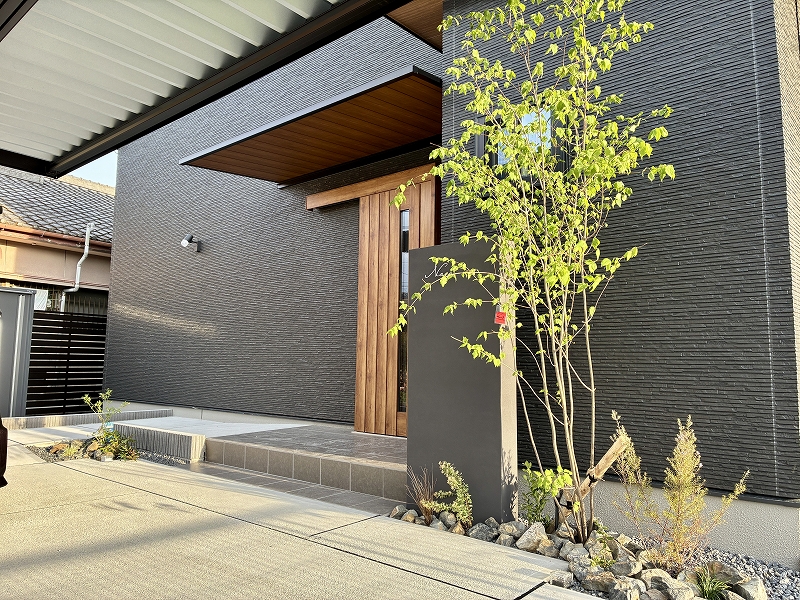 HOME» スタッフBlog »ブラックの外観に映える、機能美とやさしさを両立した外構|霧島市 N様邸