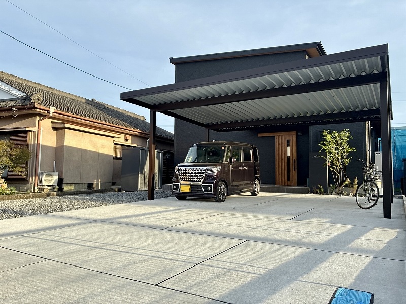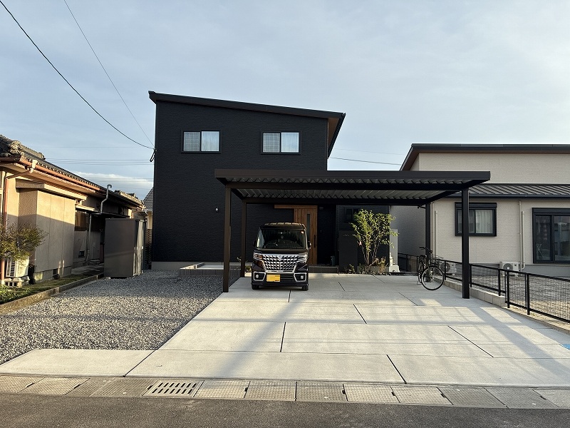 今回は霧島市にて施工させていただいた、万代ホームのスタイリッシュなブラック住宅に合わせた外構工事をご紹介します。
