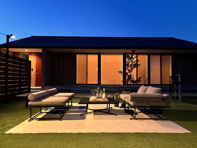 - テラスが夜のくつろぎ空間に