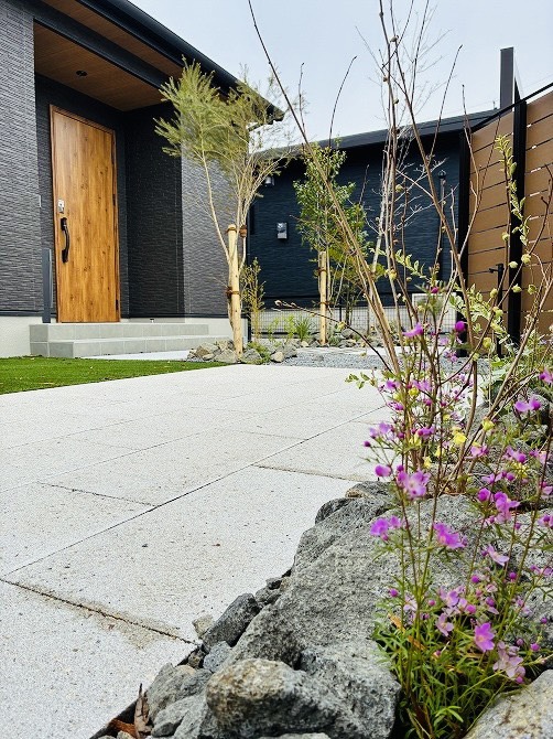 今回のお客様は黒×木目で魅せる植栽豊かな新築外構工事