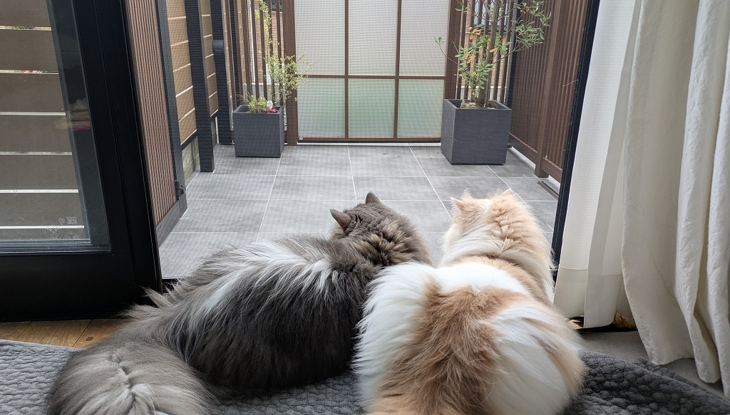 気づけば仲良く並んで、お庭をじっと眺める姿が。