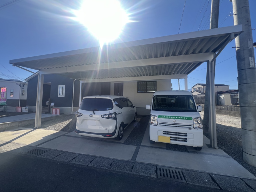 カーポートはスタイリッシュなブラックポリカで暑さも軽減!!